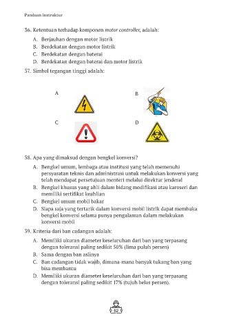 36. Ketentuan terhadap komponen motor controller, adalah: