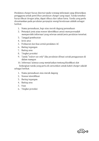 Peralatan charger harus disertai tanda tentang informasi yang dibutuhkan