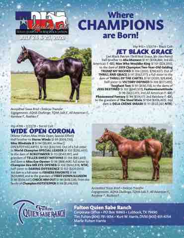 Engagements: AQHA Challenge, TQHA Sale F., All American F., Rainbow F., Ruidoso F.