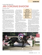 JRS Coronas Shadow was bred in Louisiana by Julien Stevens III out of mul- tiple graded stakes-placed Shadow Of Colors. A winner of four races, Shadow of Colors finished second in both the 2010 Mother’s Day Stakes-RG3 and that year’s Flashy Hemp Stakes-RG3, both at Delta Downs. The mare has produced 100% money earners from three starters. JRS Coronas Shadow is her top earner and first stakes winner.