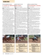 The sorrel filly broke first from the 9th post position on the lead and battled for precious ground under Jesus Virgen. The pair led by a neck in the stretch, but found a late burst of speed to increase that lead to 1-length at the wire. They were the winner’s in their comprehensive wire-to-wire victory, covering the 350-yard fast track in :17.453, and earn- ing a career best 96 speed index.