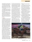 RG Golden King (4) por atrás y derribó a José Manuel Cisneros, continuando solo la car- rera; Exquisite Stride se fue ahora hacia el riel interior con el que estuvo a punto de chocar al igual que con Favored Fire (1), quedando sin oportunidad de figurar en la carrera como se esperaba. RG Golden King se repuso del inci- dente, y continuó firme hacia la meta, llevando a su derecha a Puddles Cash (5) que por el cen- tro de la alterada pista avanzaba también con decisión y libertad. Se estableció un cerrado duelo entre esta y RG Golden King, que en las yardas finales se decidió a favor de la potranca por diferencia de cuello.