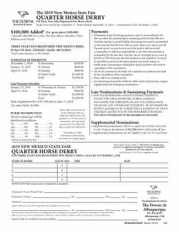 Horses that entered and ran in the 2018 New Mexico State Fair QH Futurity will qualify for a 50% discount on nomination and sustaining payments for the 2019 New Mexico State Fair QH Derby.