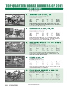 In 2011: 1st Prairie Meadows Champ.-G2, Keokuk S.-G3 (shown, #8), Golden Driller S., 2nd Fair Meadows Belles S., Indiana Downs Cl. S., 5th AQHA Chal. Champ.-G1, Ntr PRM 440yds.