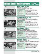 Race Record: Los Alamitos Million F.-G1, Ed Burke Mem. F.-G1, Los Alamitos D.-G1, Los Alamitos Invit. Champ.-G1, Los Alamitos Winter Champ.-G1, Charger Bar H.-G1, Calif. Brds.’ Matron S.-RG3, Calif. Brds.’ Soph. S., etc.