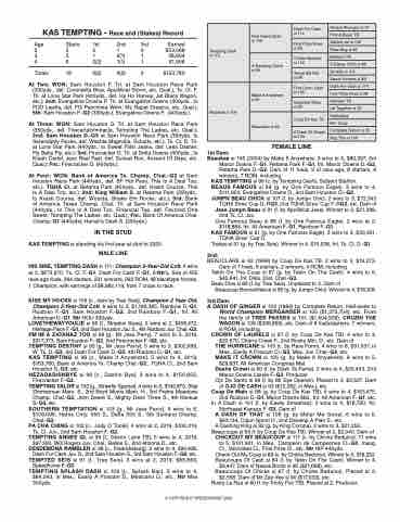 KAS TEMPTING si 99 (c. by Tempting Dash). Subject Stallion. BEAUS FAMOUS si 99 (g. by One Famous Eagle). 3 wins to 4,