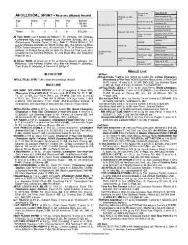 APOLLITICAL SPIRIT - Race and (Stakes) Record