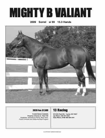 Cooled Semen Available Property of Homer A. “Bud” Hill Eligibilities: Speedhorse Races, Black Gold, Future Fortunes and Oklahoma Bred Program