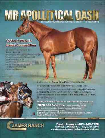 Eligibilities: Speedhorse, Oklahoma Bred Program, Black Gold, OQHRA, QHRAI, & TQHA Sires’ Cup.
