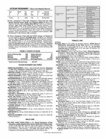 Foals of Racing Age 586 Stakes Winners 18 SHtIaSrtSeIrRsE, OCEAN RUNAW4A2Y9si 105S: t3a-kTeims ePlCahceadmpion, High Mon4e0y WEinanrenrinsg Horse. 10 wins to2535, 1,64T2o,4t9a8l ,RLOoMs Alamitos Million F.-3G015, ToGtaolldEeanrnSintagtes Million$7F,7.-4G21,6, 9G4ov. CuEparFn.-iRnGgs1/,SCtahratmerp. of Cha$m18p,.-0G418,