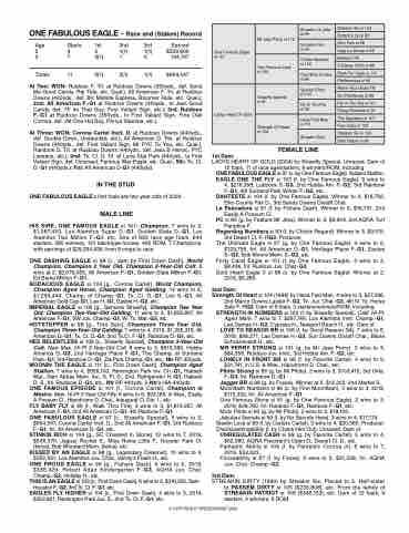 ONE FABULOUS EAGLE si 97 (c. by One Famous Eagle). Subject Stallion. EAGLE ONE THE FLY si 103 (f. by One Famous Eagle). 6 wins to 4, $216,398, Lubbock S.-G3, 2nd Hobbs Am. F.-G2, 3rd Rainbow