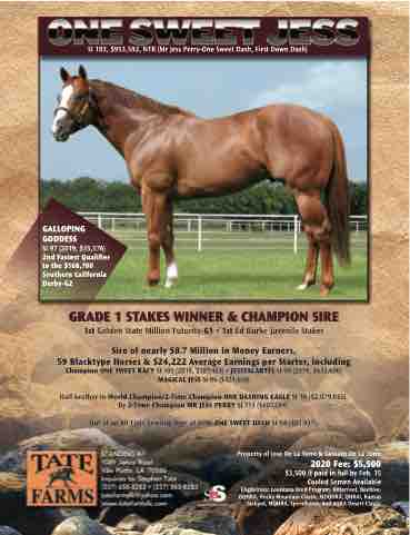 1st Golden State Million Futurity-G1 • 1st Ed Burke Juvenile Stakes Sire of nearly $8.7 Million in Money Earners,
