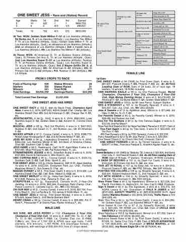 MAGICAL JESS si 96 [g., Red Hot Rhythm]. 4 wins to 3, $421,650, Ruidoso D.-G1, 2nd Desert Cl. F., 3rd Ruidoso Juv., 5th All American F.-G1.