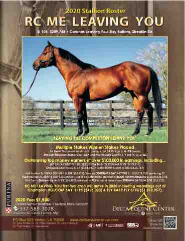 RC ME LEAVING YOU first foal crop will arrive in 2020 Including weanlings out of Champion VOLCOM BAY SI 99 ($426,023) & FLY BABY FLY SI 96 ($1,813,957).