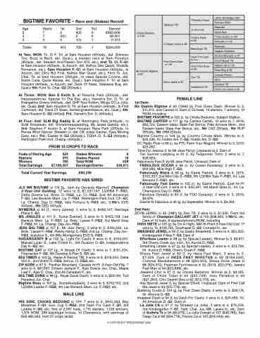 BIGTIME FAVORITE si 102 (c. by Chicks Beduino). Subject Stallion. BIGTIME CARTER si 117 (g. by Carters Cartel). 10 wins to 7, 2019,