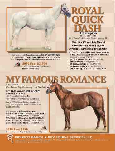 Full brother to 2-Time Champion FIRST SOVEREIGN SI 106 ($278,829), A REGAL CHOICE SI 101 ($735,507). Out of AQHA Dam of Distinction HAREMS CHOICE SI 85.