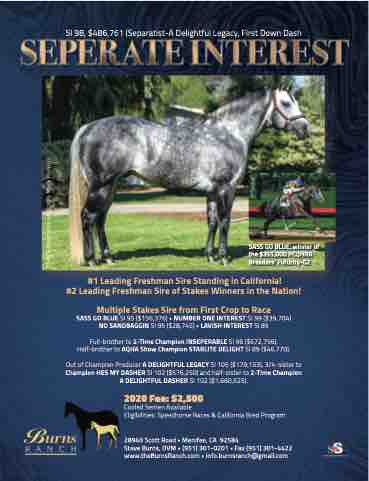 SASS GO BLUE SI 95 ($156,376) • NUMBER ONE INTEREST SI 99 ($39,704) NO SANDBAGGIN SI 95 ($28,745) • LAVISH INTEREST SI 85