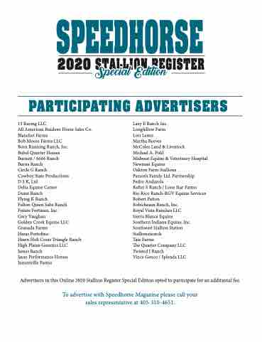 Advertisers in this Online 2020 Stallion Register Special Edition opted to participate for an additional fee.