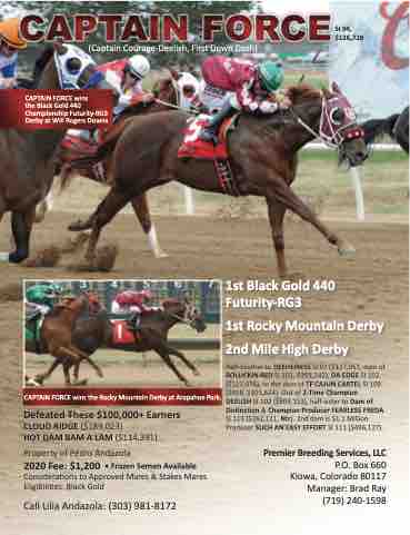 CAPTAIN FORCE wins the Rocky Mountain Derby at Arapahoe Park.