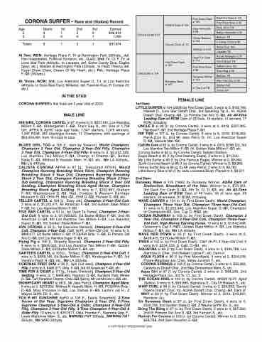 OCEAN RUNAWAY si 105 (c. by First Down Dash). Champion 2 Year Old, Champion 2-Year-Old Colt, Champion Three-Year- Old Colt, High Money Earning Horse. 10 wins to 3, $1,642,498, Governor’s Cup F.-RG1, Golden State Million F.-G1, Los Alamitos Million F.-G1, etc. Ntr LA 400yds.