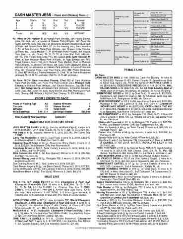 (twice), Top Deck H.-G3, Rocky Mtn. H., La Plata S., Animas H., etc. DASH MASTER JESS si 103 (c. by Mr Jess Perry). Subject Stallion. LIL FAMOUS DASH si 102 (f. by One Famous Eagle). 3 wins to 4,
