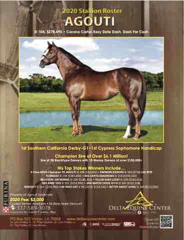 2-Time APHA Champion TH AGOUTI SI 106 ($32,920) • SWINGIN DADDYO SI 105 ($718,108) NTR RUSHAGO SI 104 ($281,846) • IRIS CARTELSBADNEWS SI 104 ($193,503)