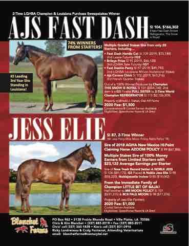 Sire of New Track Record Setter A NOBLE JESS SI 106 ($81,175), G3 Placed A Noble Jess Elie SI 98 ($58,220), Noblejesselie Inview SI 85 ($14,042).