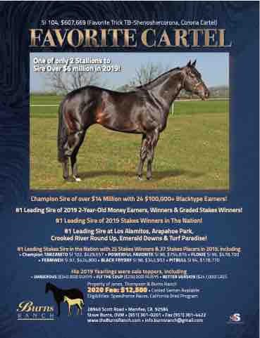 2020 Fee: $12,500 • Cooled Semen Available Eligibilities: Speedhorse Races, California Bred Program