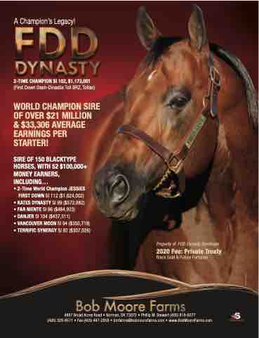 • 2-Time World Champion JESSIES FIRST DOWN SI 112 ($1,624,002) • KATES DYNASTY SI 99 ($572,882)
