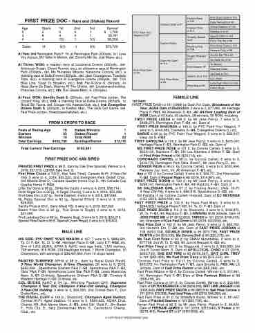 First Ladybug Doc si 89 [g., Shawne Bug]. 3 wins to 3, 2019, $20,215. Special Prize Dash si 95 [f., Special Crown Royal]. 2 wins to 3, $15,603.