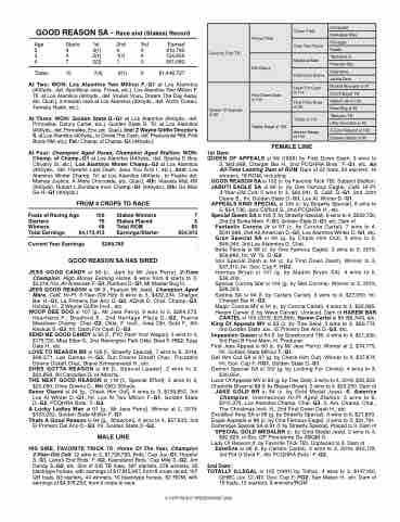 Foals of Racing Age 106 Stakes Winners 7 SHtIaSrtSerIsRE, GOOD REASON76SA sSi t1a0k2e:sCPhlacmedpion Aged Horse5, WCinhnaemrspion Aged Stallion.487 winsTototal4R, O$1M,446,727, Los Alamit6o5s ToTtwaloEMarinllionngsF.-G1,$G4,o1723,841239StateEaDr.n-Gin1g,sC/Shtamrtepr. of Cham$5p4.-,9G113,