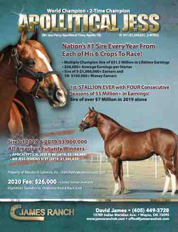 Sire of 2018 & 2019 $3,000,000 All American Futurity Winners