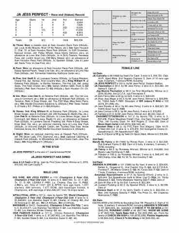 JA JESS PERFECT is the sire of 1 starter/winner/ROM.