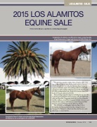The 2015 Los Alamitos Equine Sale recorded a slight reduc- tion in figures from last year. Preliminary results for the sale, which was held Oct. 3-4 at the Los Alamitos Race Course in Cypress, California, report 247 yearlings sold for $4,343,000, compared to 243 yearlings selling last year for $4,610,900. The $12,000 yearling median saw a slight 4.4% increase from 2014. In all, 267 horses sold for $4,565,400.