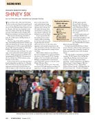 move to the center of the track, which meant losing valuable fractions of a second that gave way to Shiney Six (#7) and let her hunt down the finish line, snatching vic- tory away by a difference of a millimeter in a photo finish.