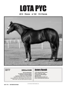 With Considerations Cooled/Frozen Semen Available Property of Lota PYC Racing Inquiries to Steve Holt • (918) 760-5470 Eligibilities: Speedhorse Races, Black Gold, Iowa Double Gold, Indiana Stallion Service Futurity, TQHA Sires’ Cup and Oklahoma Bred Program