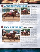 fastest. Ridden by Felipe Garcia-Luna, Tools In The Sky broke well from post 1 and hooked up with Apolitical Runaway in lane 3. Drawing away from the pack, Tools In The Sky held a 1/2-length lead mid-stretch before holding off favored Im Jess Special V to win by a neck. It was the 1st win for the gelding, who is trained by Michael Joiner for Licon Farm & Ranch LLC. Tools In The Sky’s 1st appearance was in a trial to the West Texas Futurity-G1, where he broke a step late and bore in, losing ground to finish last. His next 2 starts in the Ruidoso & Rainbow futurity trials were bet- ter – finishing 3rd & 5th, respectively – but he didn’t qualify to the finals. Bred by George & Ruben Villalobos, Tools In The Sky is by First Down Dash & out of No Tools Required si 112 ($116,509), a multiple graded stakes winning daughter of Jody O Toole. Tools In The Sky is a 1/2-brother to stakes winners One Hot Mecanic si 120 ($158,472) & Required Fire si 93 ($71,235) and to stakes-placed winner Firing Tools si 103 ($153,018).