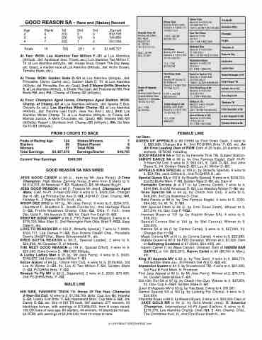 Foals of Racing Age 124 Stakes Winners 7 SHtIaSrtSerIsRE, GOOD REASON89SA sSi t1a0k2e:sCPhlacmedpion Aged Horse8, WCinhnaemrspion Aged Stallion.57 winsTototal4R, O$1M,446,727, Los Alamit7o8s ToTtwaloEMarinllionngsF.-G1,$G4,o47227,287289StateEaDr.n-Gin1g,sC/Shtamrtepr. of Cham$4p9.-,7G415,