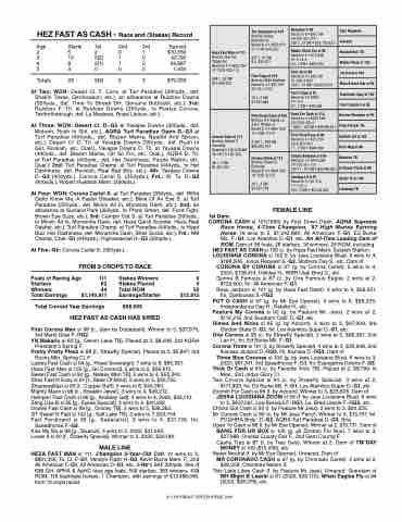 Ladies Fast Cash si 94 [g., Royal Sovereign]. 7 wins to 6, $85,361. Heza Fast Afair si 103 [g., Go Concord]. 5 wins to 5, $56,815. Sweet Fast Cash si 90 [g., Nalees Man TB]. 5 wins to 4, $55,240. Shez Fast N Easy si 91 [f., State Of Mind]. 5 wins to 5, $50,755. Shezarealfast si 95 [f., Copper Buff]. 5 wins to 6, $49,350.