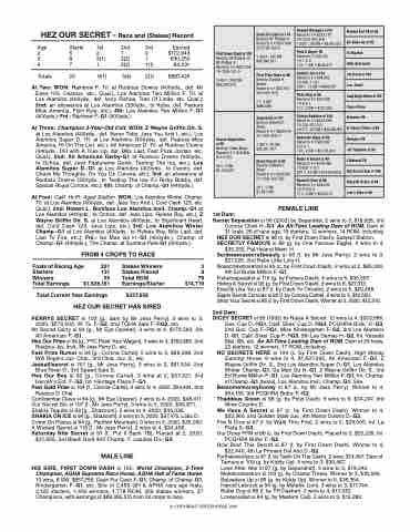 $31,656, 3rd Black Gold 400 Champ. F. Lassies Div.-G3. MALE LINE