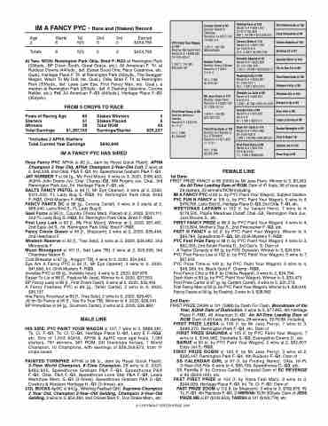 IM A FANCY PYC si 92 (c. by PYC Paint Your Wagon). Subject Stallion. PYC FUN N FANCY si 105 (c. by PYC Paint Your Wagon). 5 wins to 4, $478,760, Laico Bird S., Heritage Place D.-G3, 2nd Okla. F.-G1, etc. WEETONAS LAFAWN si 102 (f. by Valiant Hero). 7 wins to 4,