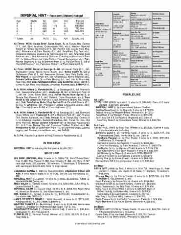 IMPERIAL HINT [c., Lahint]. 14 wins to 7, 2020, $2,209,055, Alfred G. Vanderbilt H.-G1 (twice), etc.