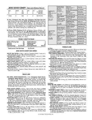 JESS GOOD CANDY si 96 (c. by Good Reason SA). Subject Stallion. THIS CANDYS AWESOME si 105 (f. by PYC Paint Your Wagon). 11 wins to 5, $434,265, Junos Request S.-G2, Higheasterjet H.-G3, Decketta S.-G3, Remington Park Okla. Bred D.-RG3, etc., Ntr