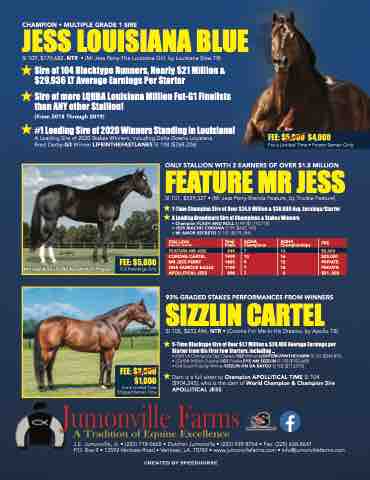 SI 109, $170,682, NTR • (Mr Jess Perry-The Louisiana Girl, by Louisiana Slew TB) H Sire of 104 Blacktype Runners, Nearly $21 Million &
