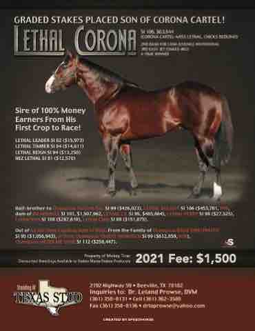 LETHAL LEADER SI 82 ($15,973) LETHAL TIMBER SI 84 ($14,611) LETHAL REIGN SI 94 ($13,250) HEZ LETHAL SI 81 ($12,570)