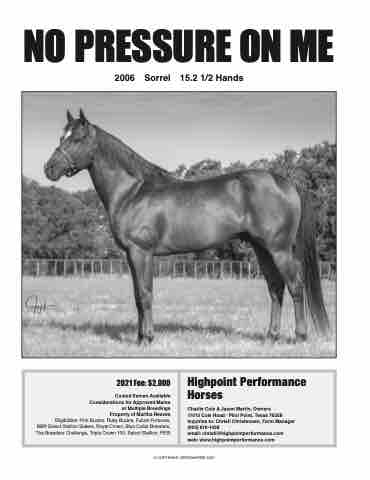 Cooled Semen Available Considerations for Approved Mares or Multiple Breedings Property of Martha Reeves Eligibilities: Pink Buckle, Ruby Buckle, Future Fortunes, BBR Select Stallion Stakes, Royal Crown, Blue Collar Breeders, The Breeders Challenge, Triple Crown 100, Select Stallion, PESI