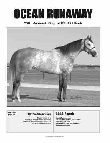 Frozen Semen Only Property of Ocean Runaway Syndicate Eligibilities: Speedhorse Races, Black Gold and Accredited Texas Stallion