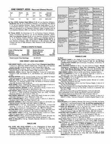 MAGICAL JESS si 96 [g., Red Hot Rhythm]. 4 wins to 3, $421,650, Ruidoso D.-G1, 2nd Desert Cl. F., 3rd Ruidoso Juv., 5th All American F.-G1.