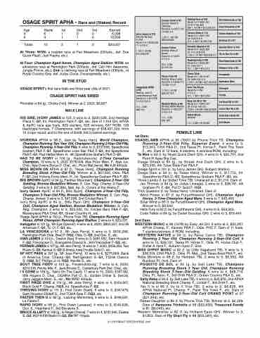 OSAGE SPIRIT APHA - Race and (Stakes) Record