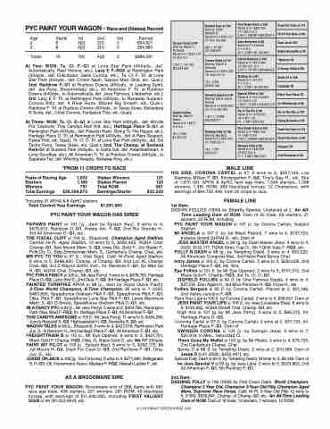 HIS SIRE: PYC PAINT YOUR WAGON si 107: 7 wins to 3, $889,581, *InTcxlu. dCel.sF3.-1GA1P, HTxA. C&l.8DA.-pGH1C, Hsteariteargse. Place D.-G1, Lazy E F.-RG2, etc. TSoirtealoCfu1r,r5e0n3t YAeQaHrAE,arAnPinHgAs& ApHC$1r,a5c9e1,a9g8e3 foals, 1,188 starters, 791 winners, 958 ROM, 241 blacktype horses, 1 World Champion, 10